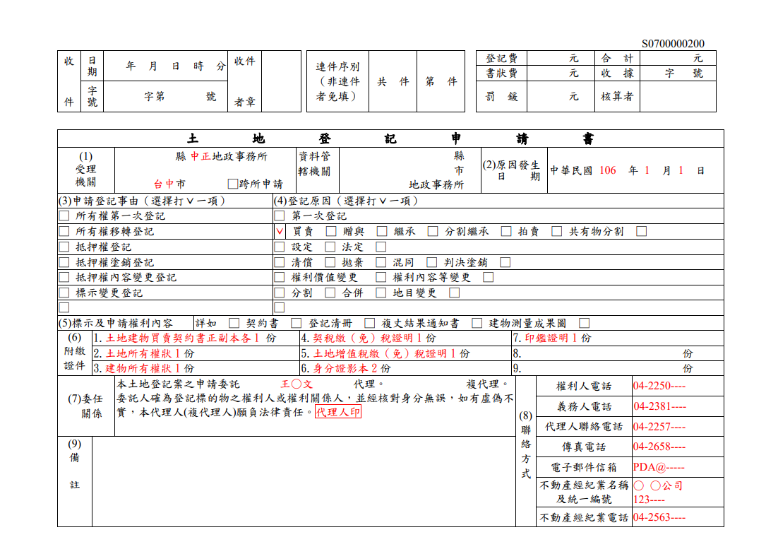 以上資訊提供參考,惟遇法令修改,請依最新法令規定辦理;土地登記申請個案情況眾多,如需協助,請來電至本所由專人為您服務,感謝您!